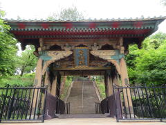 飛天の彫刻や絵画が多く描かれており、朝鮮渡来の天人門といわれている。