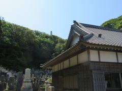本堂裏手墓域真上にメキシコ記念塔