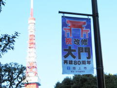 戦後、増上寺は境内整備の一環として大門の返還を東京都に要請したものの40年間進展がなかった。平成28年(2016)3月に大門が増上寺に無償譲渡され、かつ同年5月に港区登録文化財に指定された。増上寺は、同年11月から耐震補強・外観化粧直しの改修工事を進め、平成29年(2017)4月5日に竣工式を港区長等の出席を得て行った。大門の左右には各2本の柱があるが、それぞれ二重筋交いを施す等の耐震化がなされ、濃い朱色を使うなど落ち着きのある色彩バランスとなり、港区と大門振興会が「祝