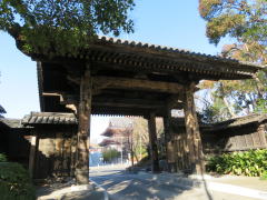 桟瓦葺の屋根を持つ一間一戸の四脚門(平唐門形式)です。一時期、明治42年(1909)の火災により移転した護国殿の中雀門として、三解脱門を入った左手に立地していましたが、建築当初の位置は明らかではありません。現在地には昭和53年(1978)に移築されました。