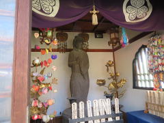 将軍家の菩提所である増上寺は格式が高く、庶民には近寄りがたいところもありましたが、この像は安国殿に安置されている黒本尊とともに多くの庶民の信仰の対象として今に続いています。