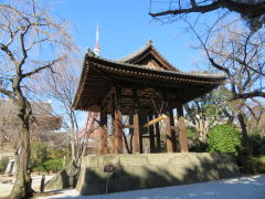 寛永10年(1633)に建立されましたが焼失、戦後に再建されました。納められている大梵鐘は、延宝元年(1673)に品川御殿山で椎名伊予守吉寛により鋳造されました。