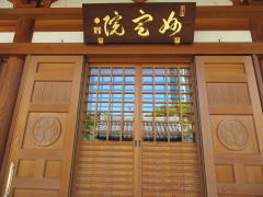 本堂正面左右扉に彫られた「三つ葉葵の紋」