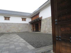 建物の復元は、宝暦年間(1570年代)の絵図資料を基に行なわれました.発掘調査では、櫓の北東側の基底部分(櫓台)に打ち込みハギの技法で積まれた石垣が角部分で2.5mの高さで確認されました。確認され阿石垣は、現在は埋め戻して保存されています。