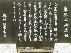 慶長10年 将軍職を秀忠公にゆずり 同12年大御所として駿府城に移った 元和2年(1616)75才でこの地に歿するまでの10年間は 駿府の黄金時代といわれ