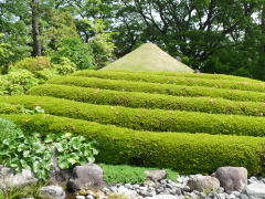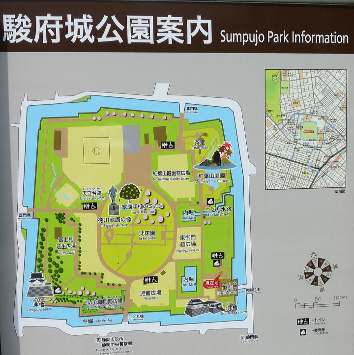 慶長10年(1605)に 将軍職を息子秀忠に譲り、同12年(1607)には 大御所として三たび駿府に入りました。この時に天正期の城が拡張修築され、駿府城は壮大な新城として生まれ変わりました。城には三重の堀が廻り、堀に囲まれた曲輪を内側から「本丸」、「二ノ丸」、「三ノ丸」とする典型的な輪郭式の縄張りとしています。