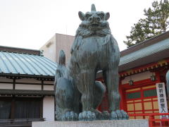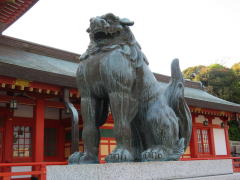 拝殿前の狛犬は、大変大きな青銅製で、重量は1トンほどあるようだ