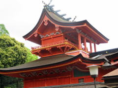 本殿は2層の楼閣をなし、浅間造と称し重要文化財に指定されている。