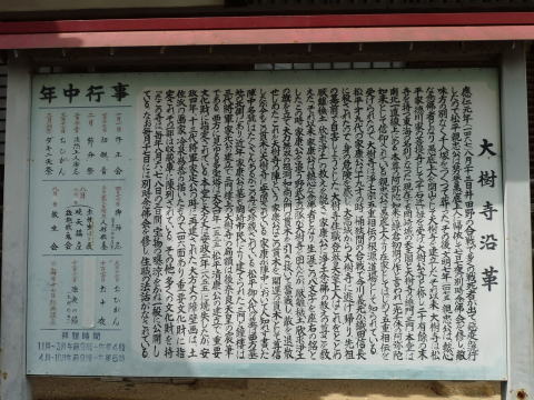 大樹寺は、文明7年(1475)安城松平家初代親忠が浄土宗鎮西派の勢誉愚底に帰依して開創し、同家の菩提寺とした。長親の代に安城家が松平総領家となったことにより、本寺は松平宗家菩提寺となった。