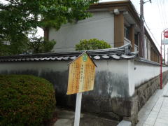 校門横の白壁の塀は大樹寺の塔頭(境内にある小寺)であった善揚院と開花院のものでした。かっては、南の総門まで続き「旗かけの松」をはじめ、大小の松が生いしげっていました。(昭和52年修復)